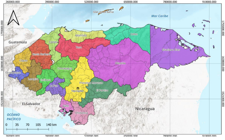 Honduras es un país centroamericano con 18 departamentos y 298 municipios, con costa en Caribe y Pacífico. Predomina la topografía montañosa y una alta diversidad de ecosistemas. Esta sección resume los rasgos territoriales, climáticos, ambientales y socioeconómicos que enmarcan la acción climática nacional.
